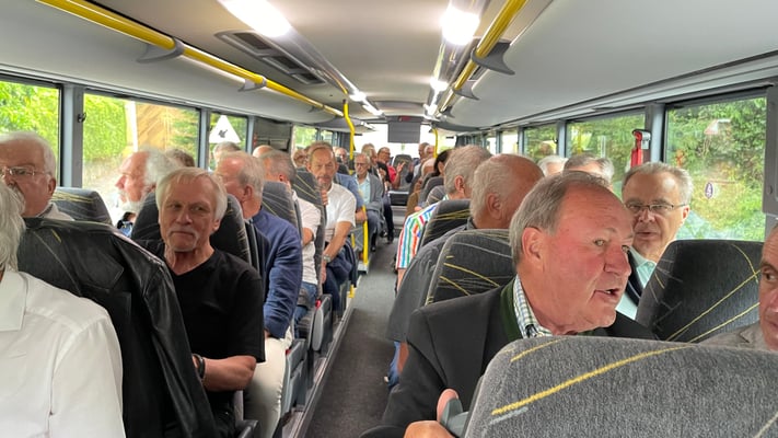 Dort wartet der PostBUS auf die 38 Teilnehmer und unseres treuen Helmut Müller, der trotz schwerer Erkrankung es sich nicht nehmen lies an diesem historischen Treffen teil zu nehmen.